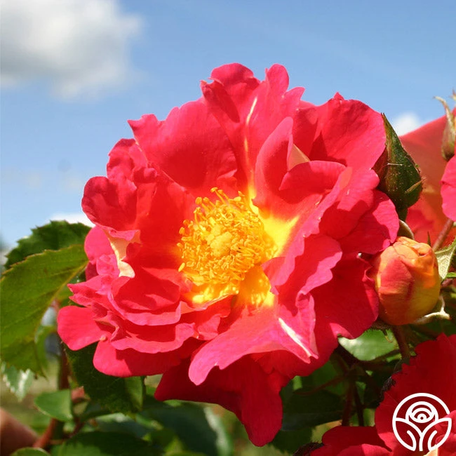 Bajazzo® is a color-intense Climbing Rose sure to grab your attention. Packed with powerful bloom power, disease resistance, and vigor, Bajazzo’s hot-pink petal color is complemented by her bright-yellow eye and rich green foliage. Specifically bred to be trained on 5-7’ walls, trellises, and arbors, this is a special rose with outstanding character. Gardeners and bees in zones 5-9 will love her!