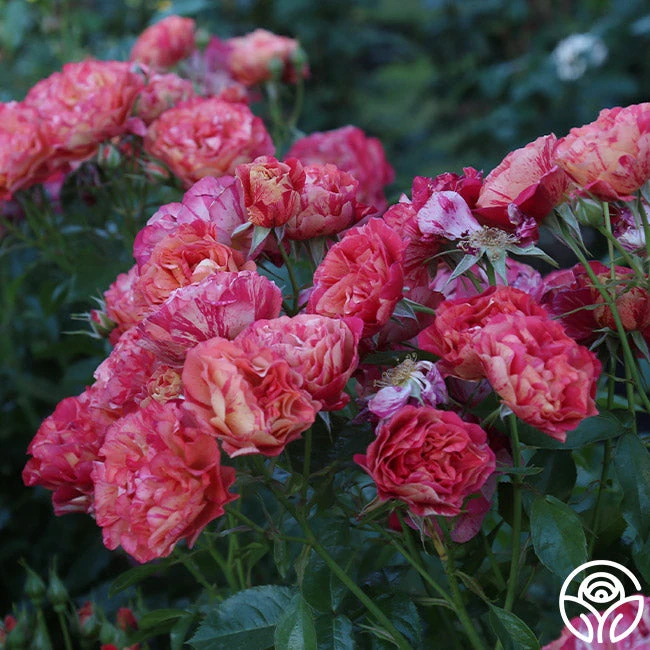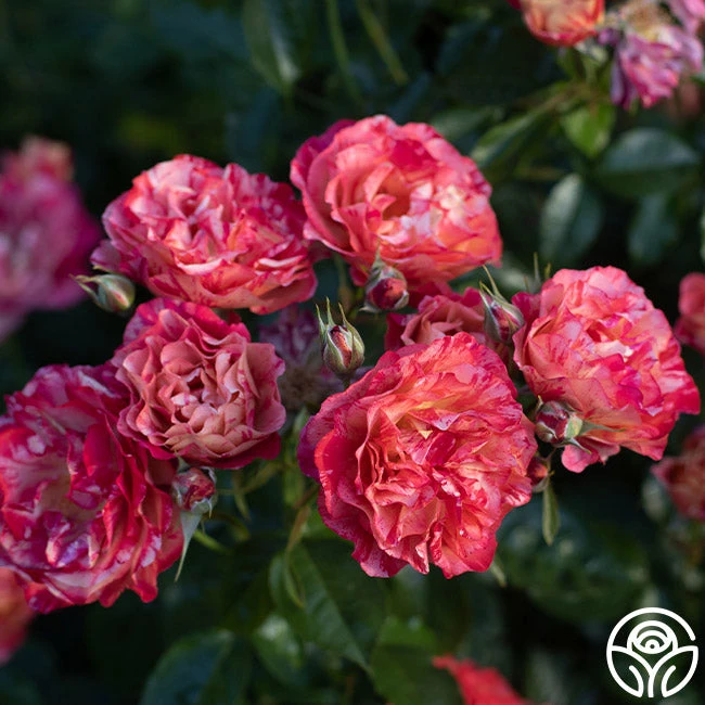 A true piece of art, the striking swirl of colors in Frida Kahlo intensifies as the flowers age, adding a red blush as the final touch. Her sweet, 3 ½” flowers are set in small clusters on a healthy, disease resistant plant with glossy foliage. Expect Frida Kahlo to bloom in flushes throughout the season.