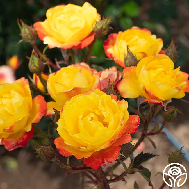 As delightful as the actress herself, the 4” blooms with 22+ petals of Judy Garland™ are bright yellow edged with orange-red. She is a continual blooming, bushy plant with shiny, mid-green foliage. Judy Garland™ has a moderate apple to rose fragrance.