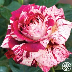 Julio Iglesias™ is unique with his intricately striped petals and camelia-shaped blooms that can grow up to 4-5″ wide. He does particularly well in warmer, west coast climates as the sun deepens the coloring of the blooms. A strong citrus and verbena fragrance floats off the snowflake-like petals, making this a great cut rose. Julio Iglesias displays healthy, disease resistant foliage and makes a great statement in your garden or a container.