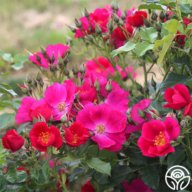 For zones 7 and up is a very bright purple flower that blooms in flushes of clusters throughout the season. Manhattan Blue produces single blossoms with 4-8 petals with a mild fragrance. This compact Floribunda will stay small at 1-2’ in height and width, just perfect for containers.