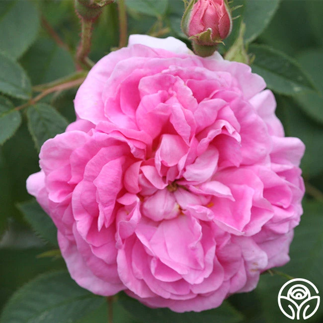 Elegant pink quartered blooms against a background of rich grey-green foliage on a tall once blooming regal bush. Among the finest of all old roses. Magnificent Alba fragrance.