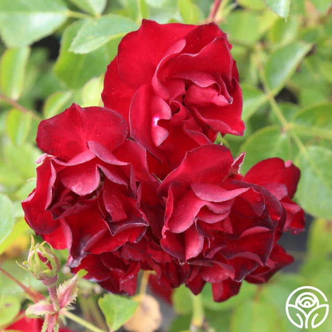 Ruby Meidiland is a wonderful, low-mounding rose that works well in urban gardens. She pushes out small, double, deep, ruby red, 1 ½” blooms with 15+ petals. Her blossoms are produced in abundant clusters on this continuously blooming plant.