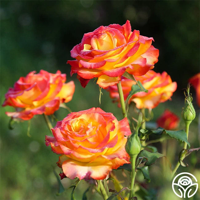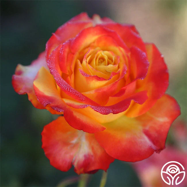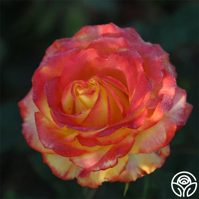 Tequila Sunrise is a very striking rose. If you like brightly colored roses, the rich, deep yellow petals edged in hot scarlet red will call to you. Her dark green leaves provide the perfect foliage for her 4″ flower with 40+ petals. This continual bloomer is very popular in Europe and New Zealand and was the winner of England’s Royal National Rose Society Gold Medal in 1988.