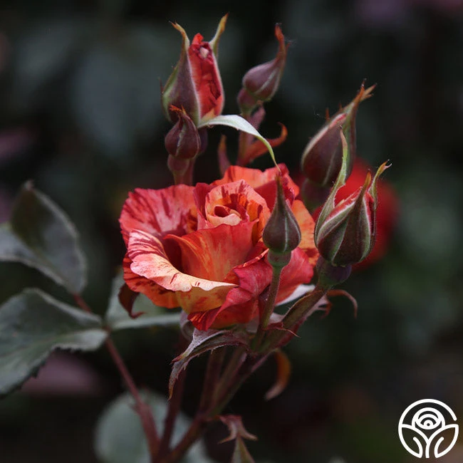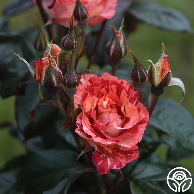 Add an element of delight to your garden with the vertical beauty of Tropical Lighting. Her striking, striped cream and dusky, red-orange blooms measure about 3.5” and fade to pink against the glossy, green foliage. Tropical Lightning may also be grown as a Shrub or as a Climber and will grow to 8-10’. Expect her to bloom in flushes throughout the season